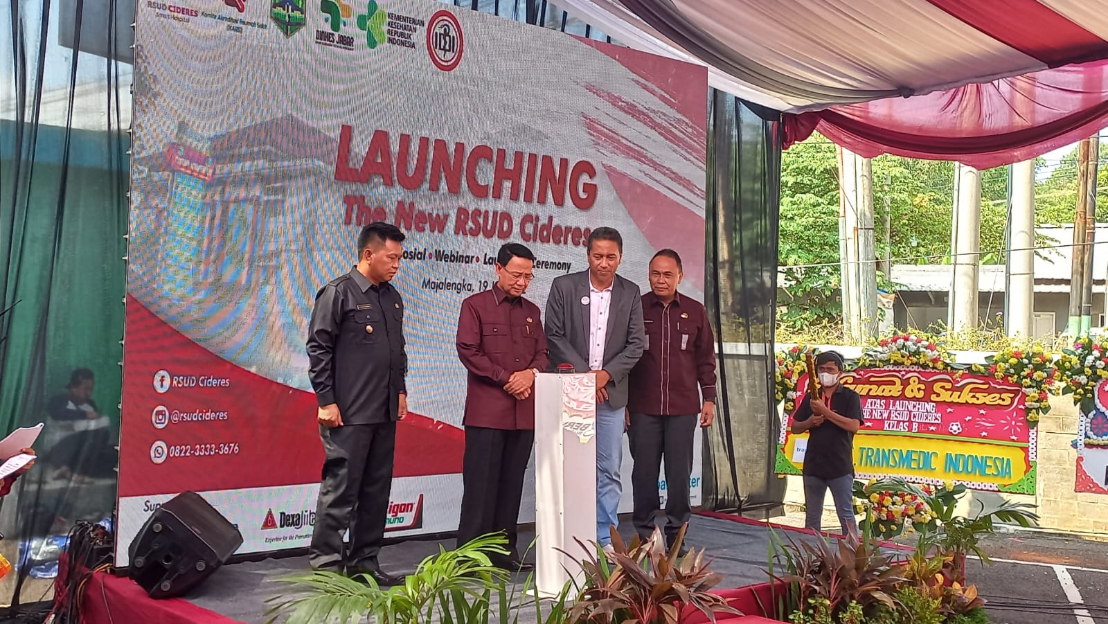 Bupati Majalengka, Karna Sobahi, bersama Wakil Bupati Tarsono D Mardiana, di dampingi Direktur RSUD Cideres Harizal Harahap serta unsur Forkopimda serta ratusan dokter dilingkungan RS Cideres meresmikan peningkatan kelas RSUD Cideres, bertempat di Halaman RSUD Cideres, Selasa (19/8).