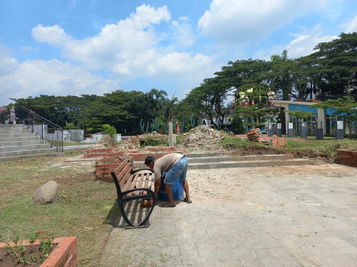 “Kamis insya Allah selesai. Intinya, hanya merapihkan saja. Tapi, tidak merubah bangunan yang ada. Seperti tihang pondasi akan tetap dibiarkan. Kita membersihkan puing-puing sisa aja,” terang Teguh.