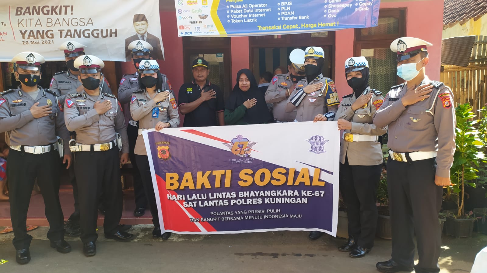 Kasat Lantas Polres Kuningan AKP. Vino Lestari melalui KBO Satlantas Polres Kuningan Iptu. Soepian menyampaikan kegiatan ini merupakan rangkaian kegiatan HUT Lalu Lintas ke-67, dengan melakukan bakti sosial ke korban Laka Lantas di Desa Cipicung dengan memberikan bantuan berupa tongkat serta sembako, dan Di Desa Cikananga juga memberikan sembako.
