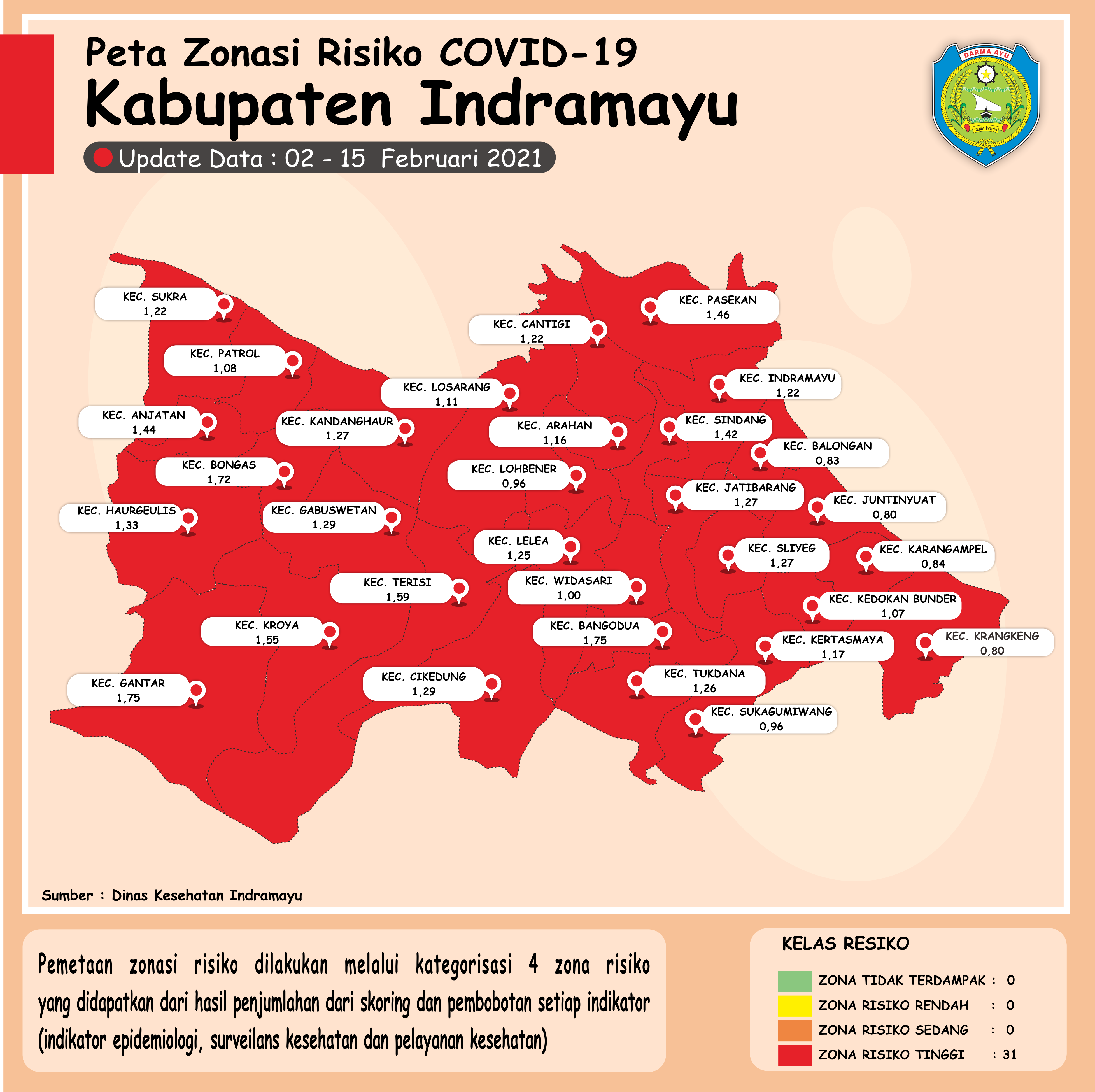INDRAMAYU, (FC).- Sebanyak 31 Kecamatan di Kabupaten Indramayu masuk zona merah dan memiliki resiko tinggi penyebaran Covid-19.