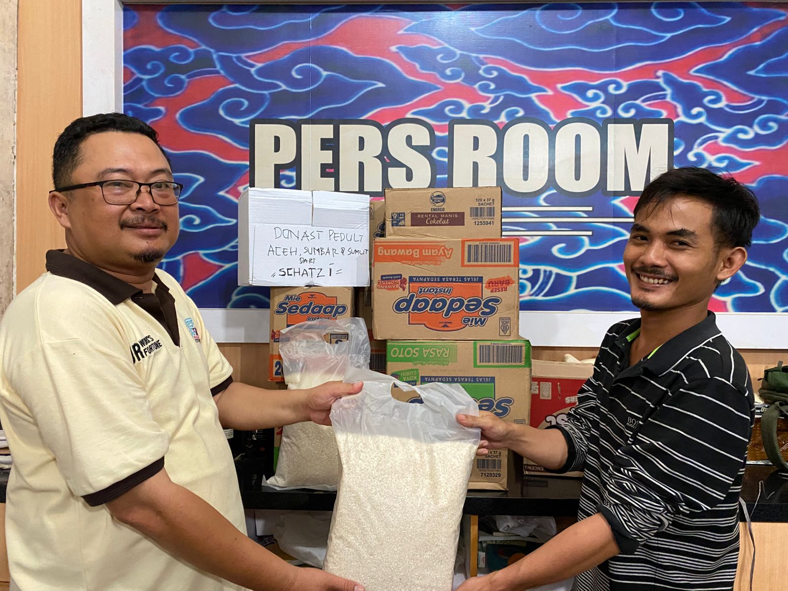 Jadi ia memberikan bantuannya melalui komunitas wartawan yang ada di Kota Cirebon, serta pemerintah setempat. Karena Schatzi tidak ada akses ke lokasi apalagi posko bantuan di Medan.