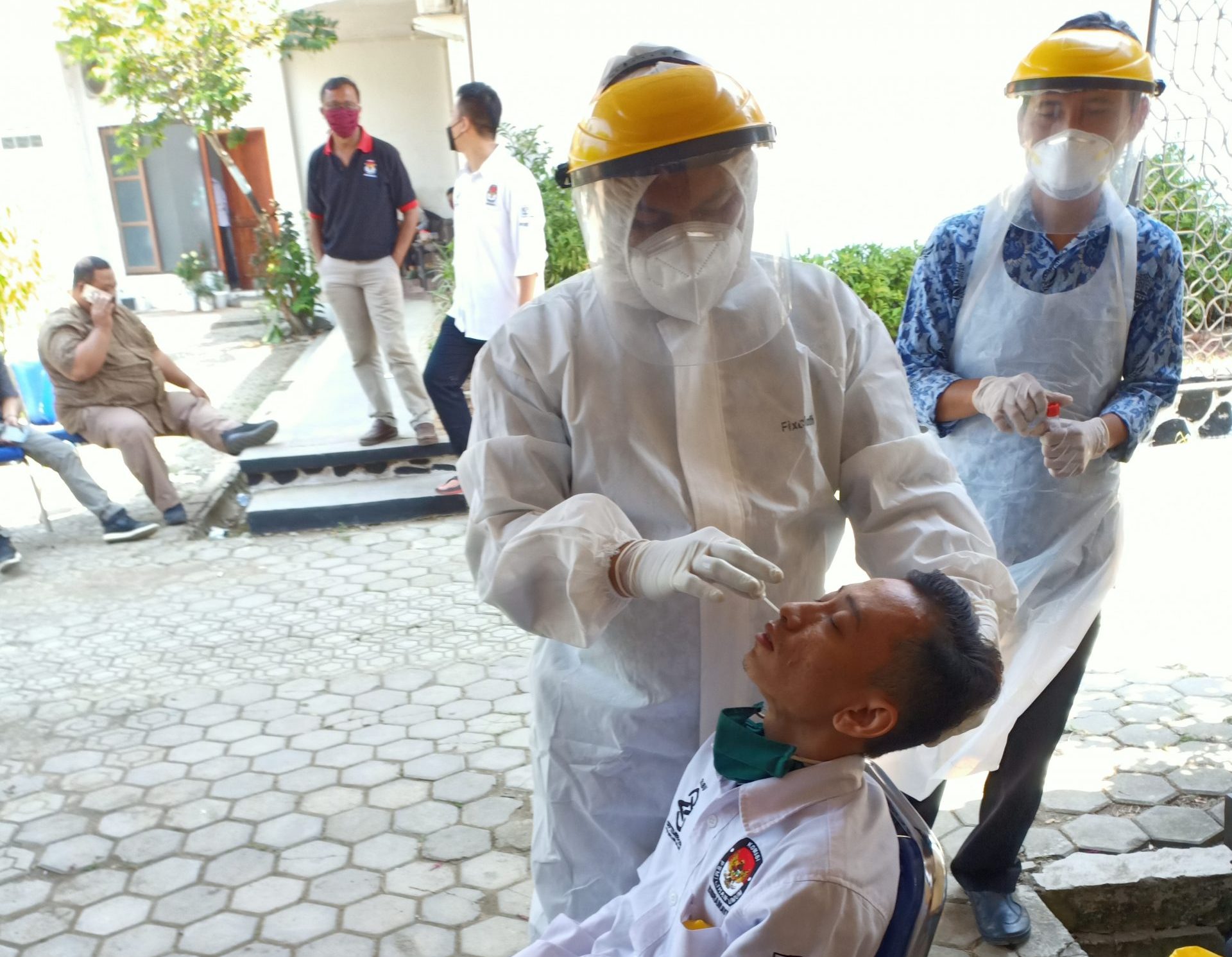 INDRAMAYU, (FC).- Puluhan pegawai di lingkungan Komisi Pemilihan Umum (KPU) dilakukan test Swab massal, Senin (9/11). Hal itu dilakukan menyusul adanya seorang pegawai KPU Indramayu yang kembali dinyatakan terkonfirmasi positif Covid-19