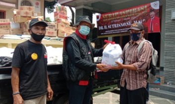 MAJALENGKA, (FC). – Anggota DPR RI Fraksi PDI Perjuangan, H Sutrisno memberikan bantuan paket sembako dan obat-obatan kepada ratusan kepala keluarga korban banjir yang terjadi beberapa hari lalu, di Kampung Muara Desa Wanasalam, Kecamatan Ligung, Kabupaten Majalengka, Selasa (23/2).