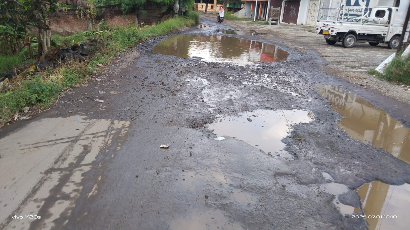 RUAS JALAN kabupaten yang menghubungkan antar kecamatan Sumber dan Kecamatan Tengahtani rusak parah dan sangat mengganggu aktivitas Masyarakat.* (Foto: Johan/FC)