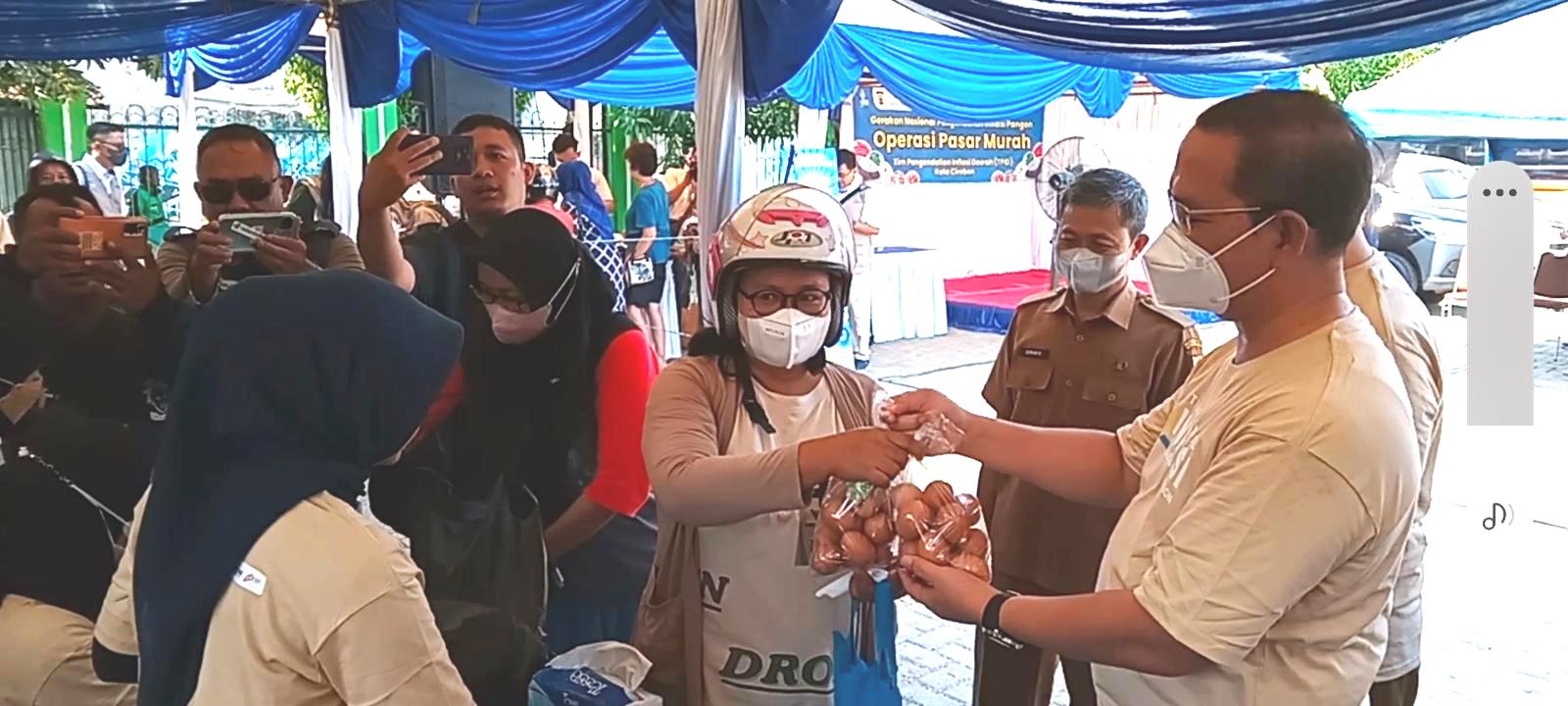 KOTA CIREBON, (FC).- Kantor Perwakilan Bank Indonesia (KPwBI) bersama Tim Pengendalian Inflasi Daerah (TPID) dan Pemkot Cirebon menggelar Operasi Pasar Murah (OPM) di halaman Masjid Nurul Amal, Perumnas Kota Cirebon pada 5-6 September 2022.