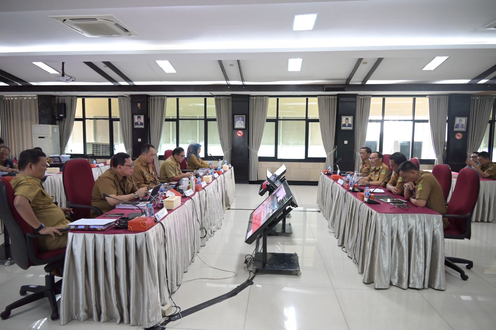 Penjabat Bupati Kuningan, hadir beserta tim yang terdiri dari Inspektur Kuningan, Asisten daerah, staff ahli Bupati, para kepala perangkat daerah dan kepala bagian setda Kuningan yang juga mengikuti rangkaian evaluasi kinerja tiga bulanan tersebut.
