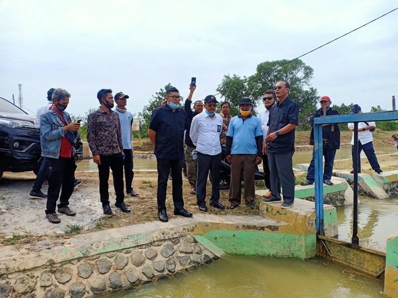 INDRAMAYU, (FC).- Anggota Komisi IV DPR RI, Ono Surono, melakukan kunjungan lapangan untuk memantau saluran irigasi dan memastikan air sampai ke lahan persawahan petani di Kecamatan Kandanghaur, Kabupaten Indramayu, Kamis (9/7).
