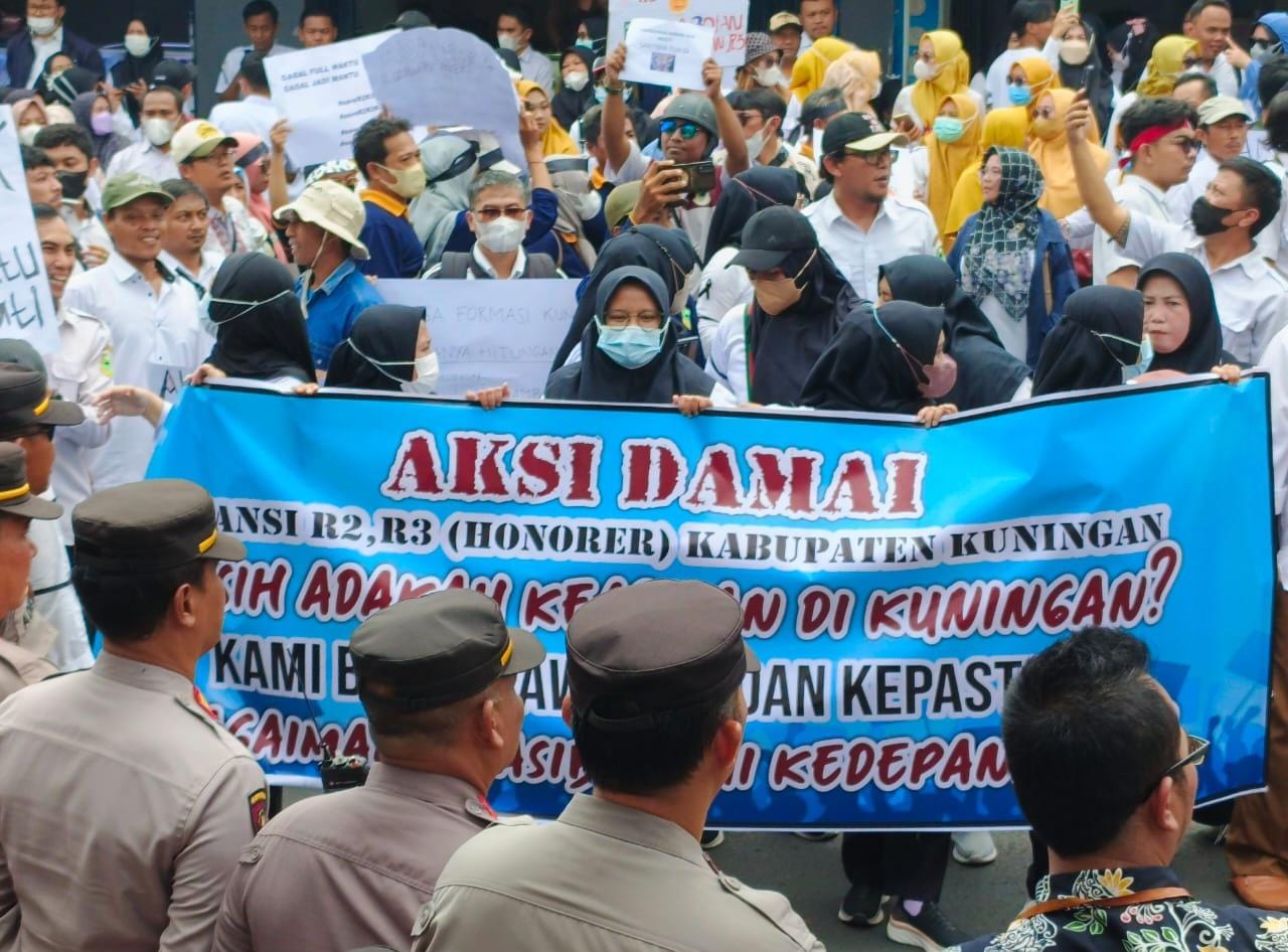 Tuntut Keadilan dan Kepastian, Ratusan Tenaga Honorer Kuningan Unjuk Rasa