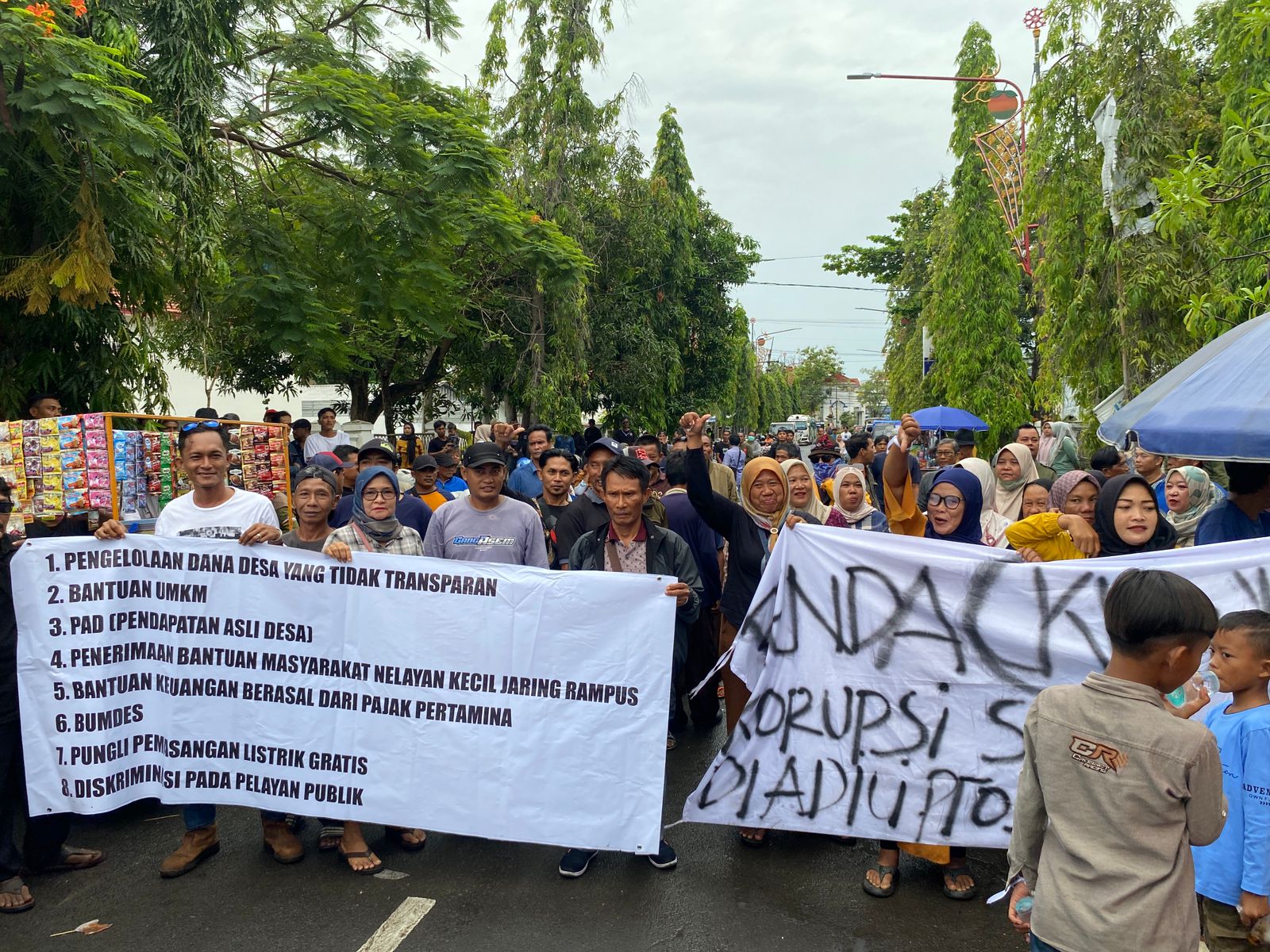 Kedatangan warga ini menuntut agar kepala desanya dicopot dari jabatannya dan diproses secara hukum karena dinilai korup dan arogan dalam memimpin Desa.