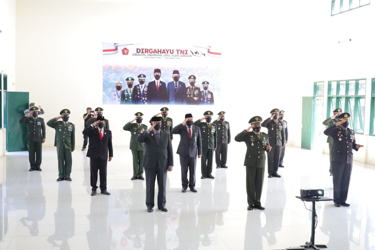 KUNINGAN, (FC).- Upacara Hari Tentara Nasional Indonesia (TNI) ke-78 berlangsung secara virtual di Aula Mashud Wisnu Saputra, Makodim 0615 Kuningan, Selasa (5/10).