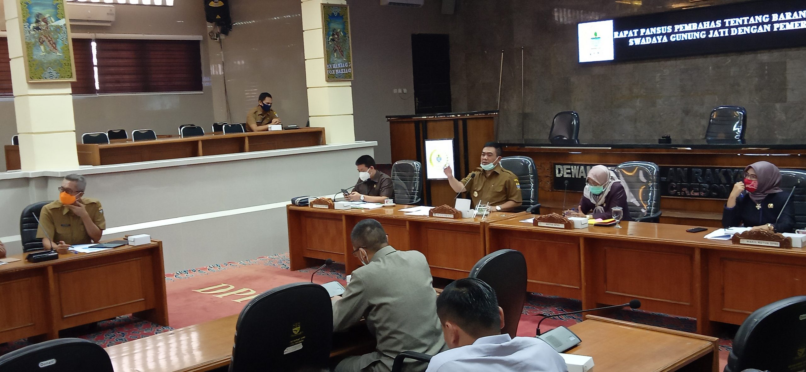 KOTA CIREBON, (FC).- Pansus hibah barang milik daerah DPRD Kota Cirebon menggelar rapat di Ruang Griya Sawala, Senin (8/6). Selain ketua pansus, hadir juga pimpinan DPRD, Walikota Cirebon, Kepala BKD dan Kepala BP4D.