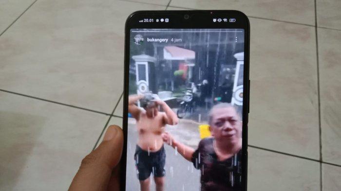 TANGKAPAN LAYAR, warga Perum BCA Kecamatan Sukahaji nampak mandi sambil hujan- hujanan. Mereka protes karena aliran PDAM sering mati.* (Foto: Ist/FC)