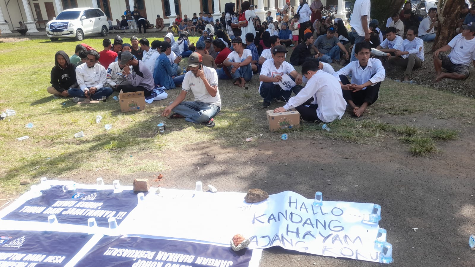 Awalnya berlangsung damai, aksi tersebut berubah menjadi ruang terbuka untuk mengungkap berbagai keluhan warga terhadap tata kelola desa. Spanduk-spanduk berisi kecaman menghiasi area kantor desa, mempertegas kekecewaan warga terhadap kepemimpinan saat ini. (Johan)